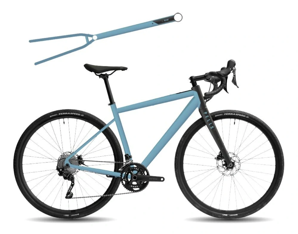 - Rám:Pells P2 Lite Alloy, Gravel Geometry, 142 mm Thru Axle, Tapered HT, Headset Cable Routing